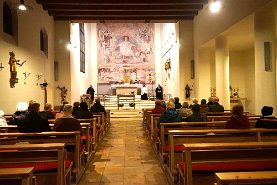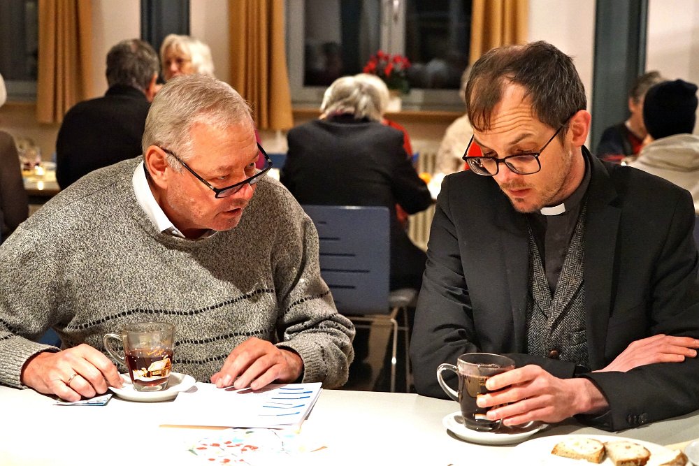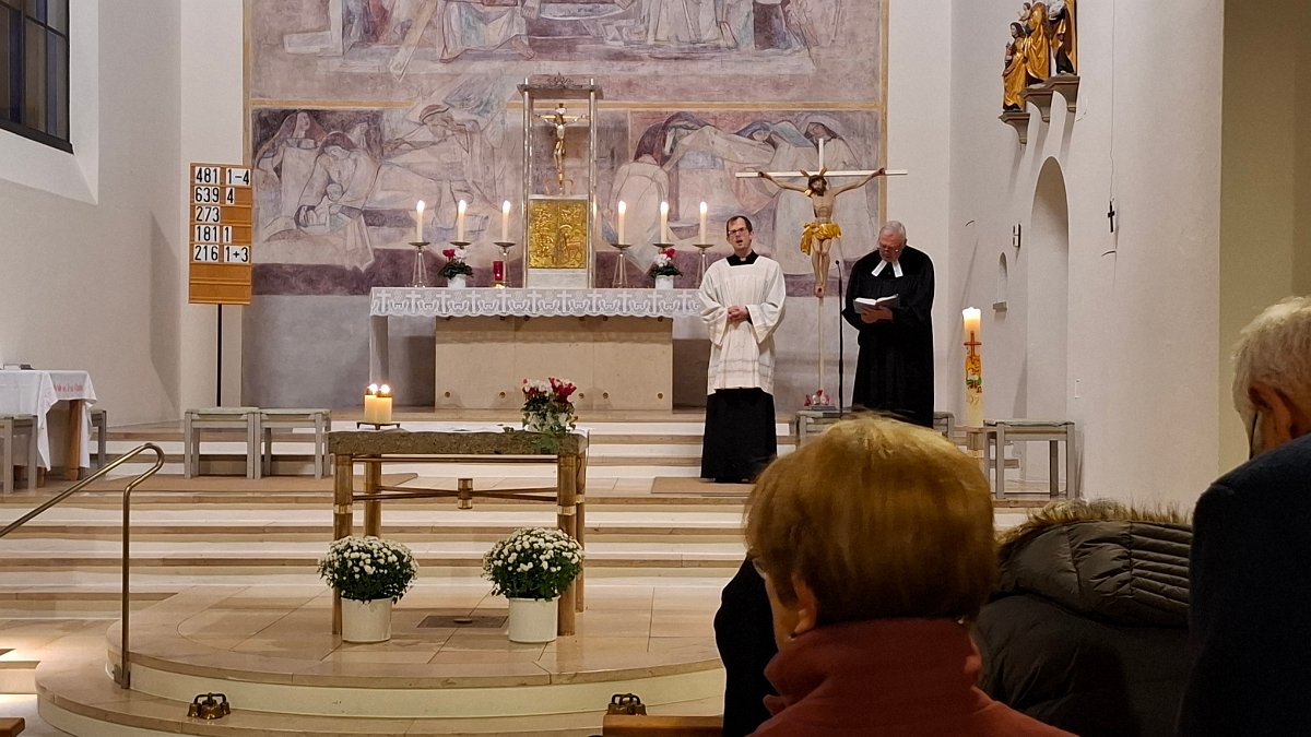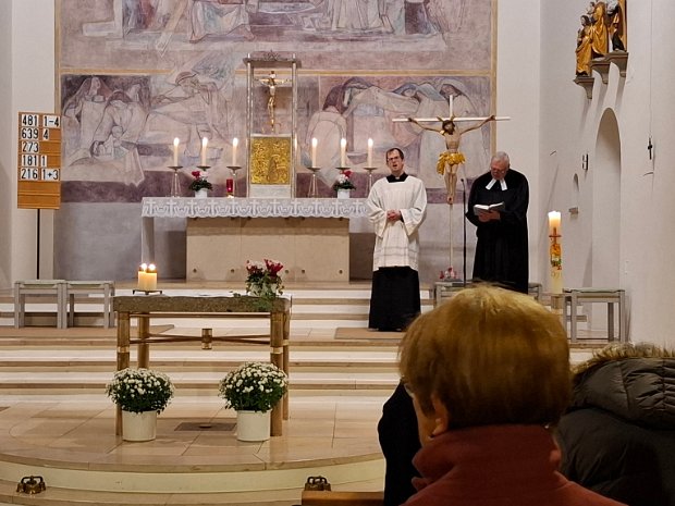 19.11.2025 - Nach einigen Jahren Unterbrechung ließen die evang. Kirchengemeinde Berg und die kath. Pfarrgemeinde Aufkirchen mit ihren Pfarrern Johannes Habdank und Mathias Klein-Heßling eine früher jährlich gepflegte Tradition aufleben: den Buß- und Bettag feiern in einem gemeinsamen ökumenischen Gottesdienst in der kath. Herz-Jesu-Kirche Höhenrain. Pfarrer Habdank legte in seiner Predigt die Bedeutung des Wortes "Buße" für diesen evangelischen Feiertag aus. Anschließend gab es im Pfarrheim eine voradventliche Zusammenkunft im kath. Pfarrheim. Fotos: Iradj Teymurian
