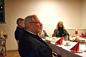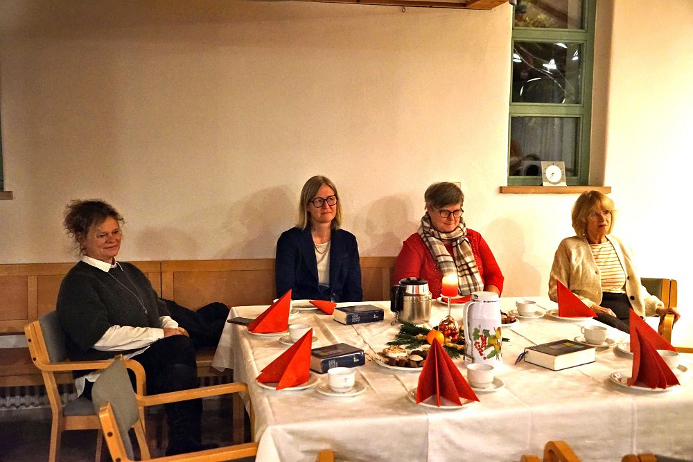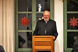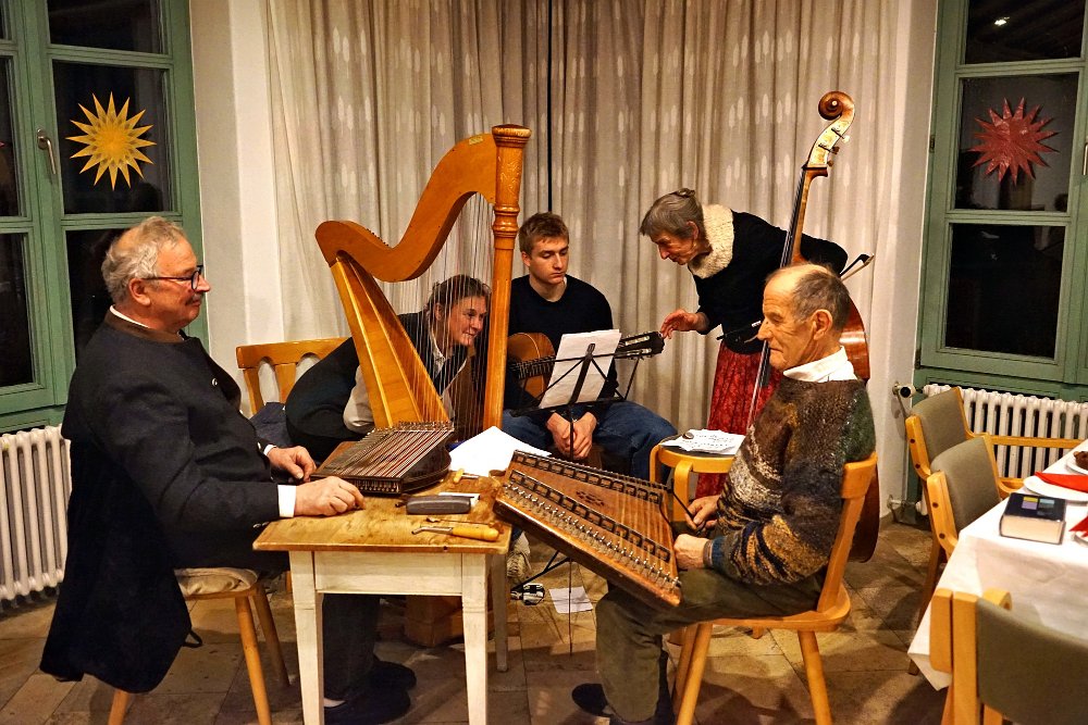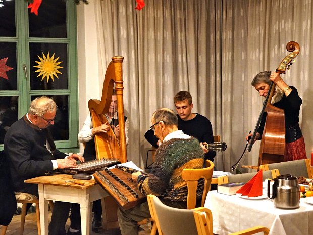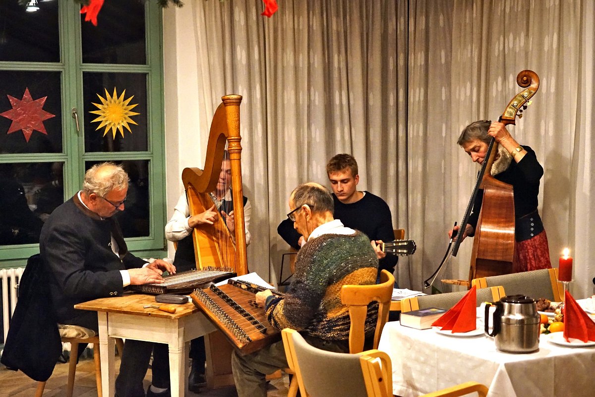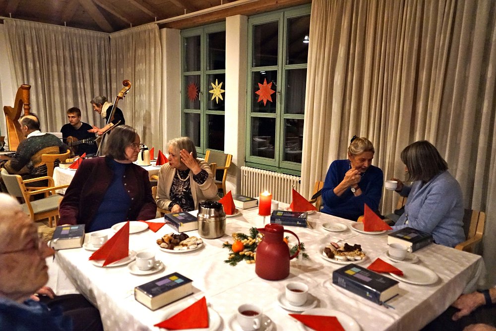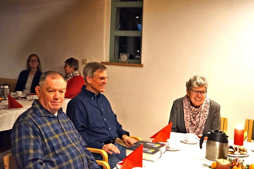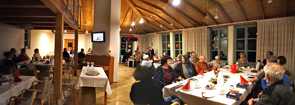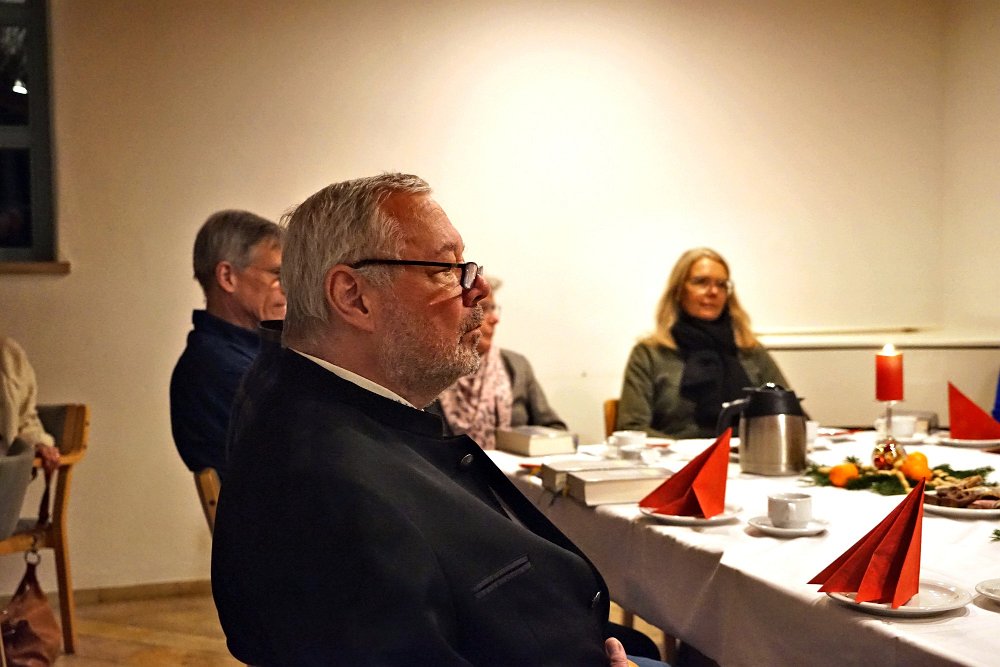 01.12.2025 - Traditionsgemäß waren am Montag nach dem 1. Advent die "Ehrenamtlichen" von Pfarrer Johannes Habdank und dem Kirchenvorstand zum "Mitarbeiteradvent" ins Katharina von Bora-Haus eingeladen. Eröffnet wurde der Abend mit einer adventlichen Lesung und adventlichen Liedgesängen, begleitet von der "Farchner Saitenmusik". Pfarrer Habdank dankte den Anwesenden für ihren z.T. schon viel Jahre währenden Einsatz. Neben Punsch und Glühwein sorgte Ina Zultmer im anschließenden gemütlichen Beisammensein für das leibliche Wohl mit Stollen, Weihnachtsbäckereien und dem obligaten "Griebenschmalzbrot". Fotos: Iradj Teymurian